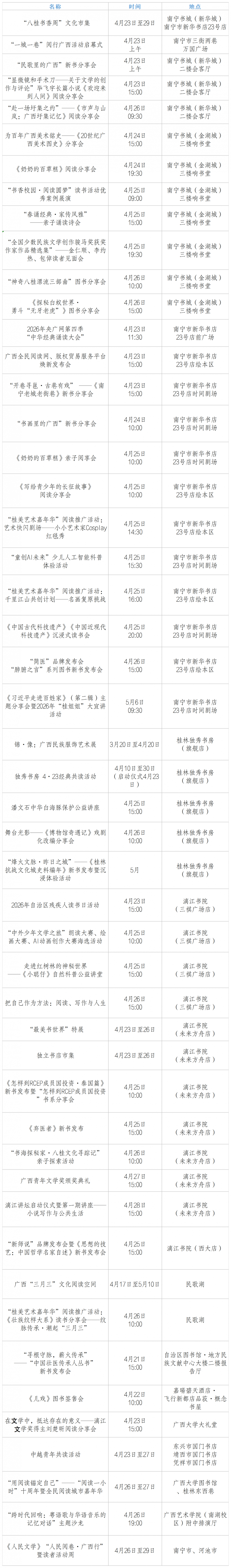 春风满座,共沐书香,2026年“八桂书香周”将于4月23日—29日与您相会。本届活动以“阅读悦美 桂在润心”为主题,以实体书店为主阵地,推出文化市集、新书发布、名家访谈、经典诵读、文化沙龙等50场特色活动,为广大读者送上阅读盛宴。