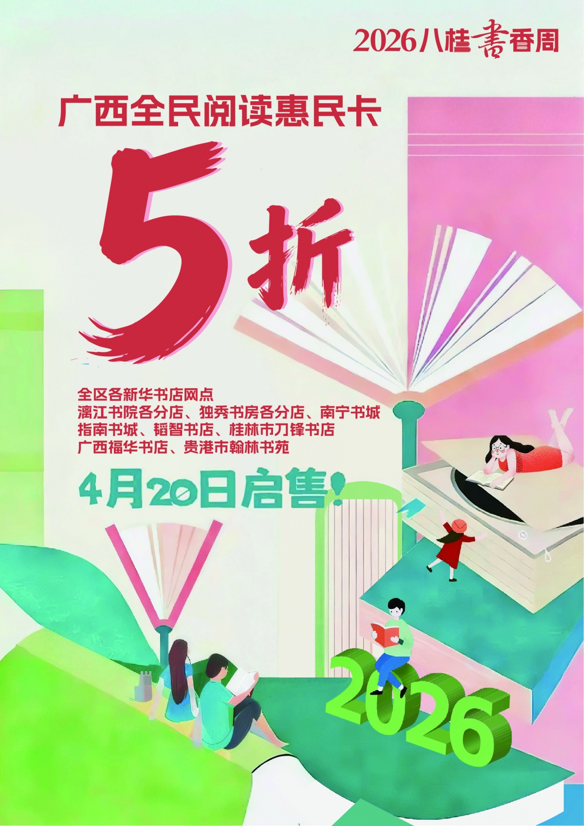 A:广西全民阅读惠民卡是自治区党委宣传部组织实施的文化惠民项目,自2019年起,通过财政补贴,面向大众发行,为广大人民群众带来了看得见、摸得着的实惠。 A:2026年广西全民阅读惠民卡共发行16万张,每张面值100元,读者5折购卡。 A:全区各新华书店网点、漓江书院各分店、独秀书房各分店、南宁书城、指南书城、韬智书店、桂林市刀锋书店、广西福华书店、贵港市翰林书苑等书店通过线上平台或线下门店发售,读者购卡后到店消费。 A:惠民卡逾期未使用将自动失效,购卡本金将按原支付路径退还。