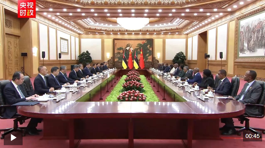 4月21日下午,国家主席习近平在北京人民大会堂同来华进行国事访问的莫桑比克总统查波举行会谈。