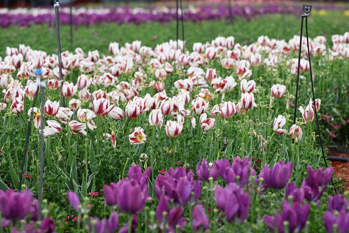 除了郁金香,大飞燕、毛地黄等也开得正艳,游人穿梭其间,宛如步入童话世界。
