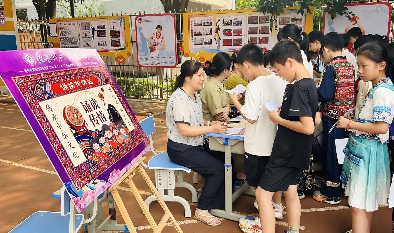 近日,南宁市高新小学南校区以“籽籽同心 共读中华”为主题的沉浸式民族团结阅读活动顺利举行。活动结合广西三月三民族文化特色,以创新沉浸式体验形式,有机融入民族团结教育内容,让学生们增强文化自信与家国担当,争做新时代好少年。