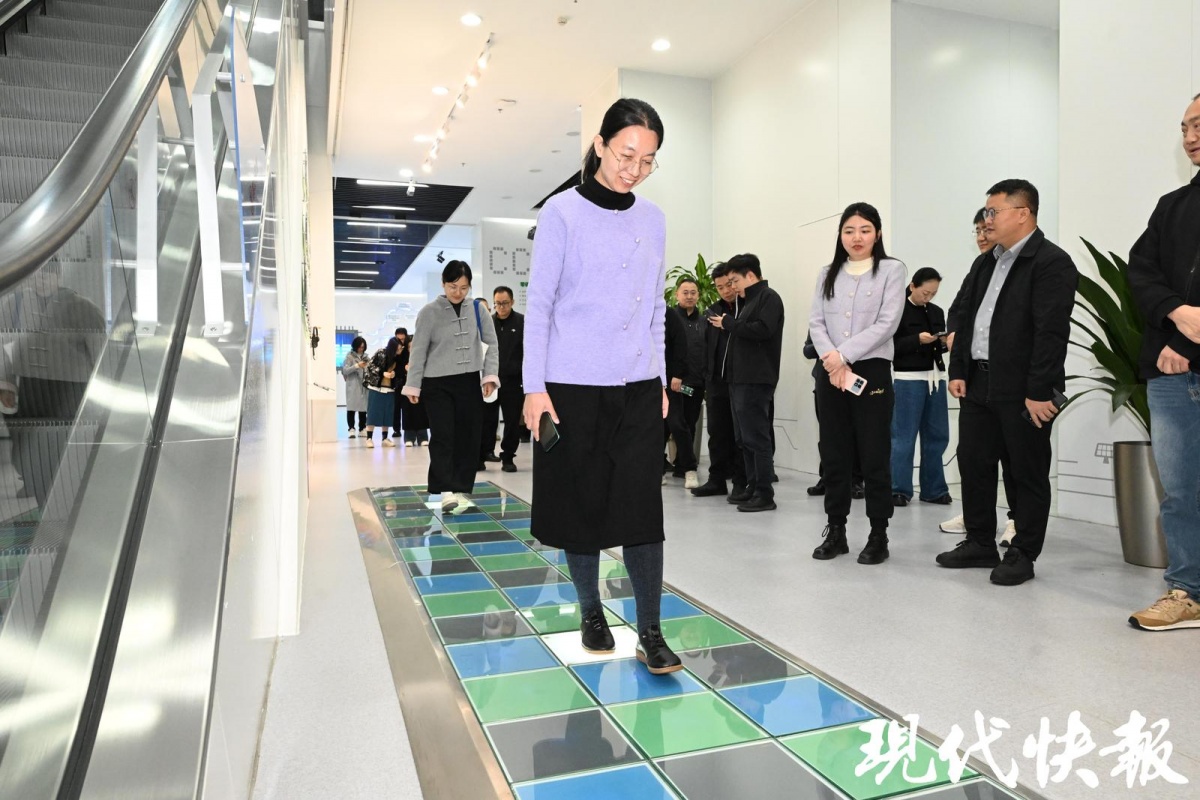 作为此次参观的重点,盐城绿色低碳发展示范区会客厅,总面积约3500平方米,按照“可感知、可体验、可焕新”的设计理念打造。媒体嘉宾依次参观了“逐绿向新、赋能向新、拓海向新、兴农向新、聚势向新”五大板块,全方位感受到盐城在风、光、氢、储、智、海、农七大领域培育新质生产力的禀赋优势、工作成果和发展方向。
