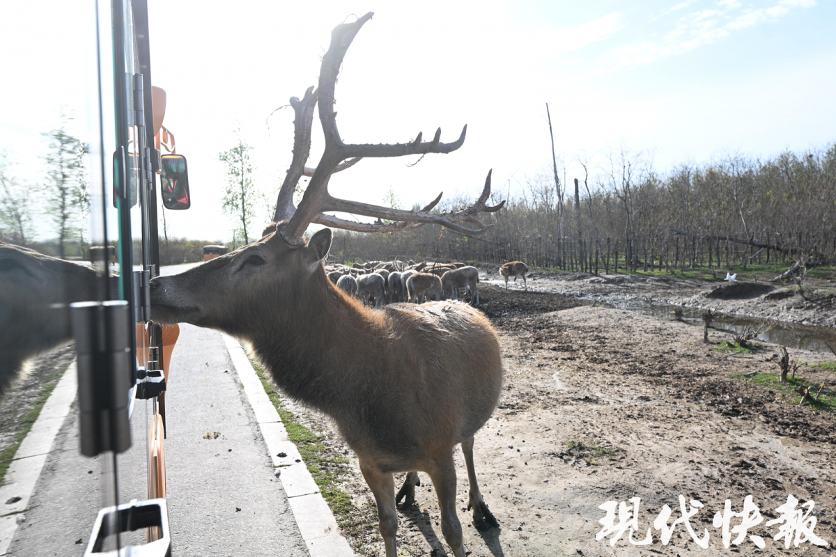 4月23日下午,由盐城市委宣传部、现代快报社共同组织的“向海图强、向绿而兴、向新转型”2026年全国重点媒体盐城行活动来到盐城大丰。20余家全国重点媒体嘉宾走进江苏省大丰麋鹿国家级自然保护区,近距离和麋鹿接触,了解麋鹿的“前世今生”。