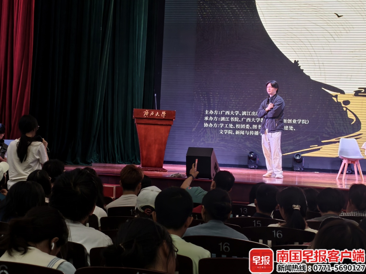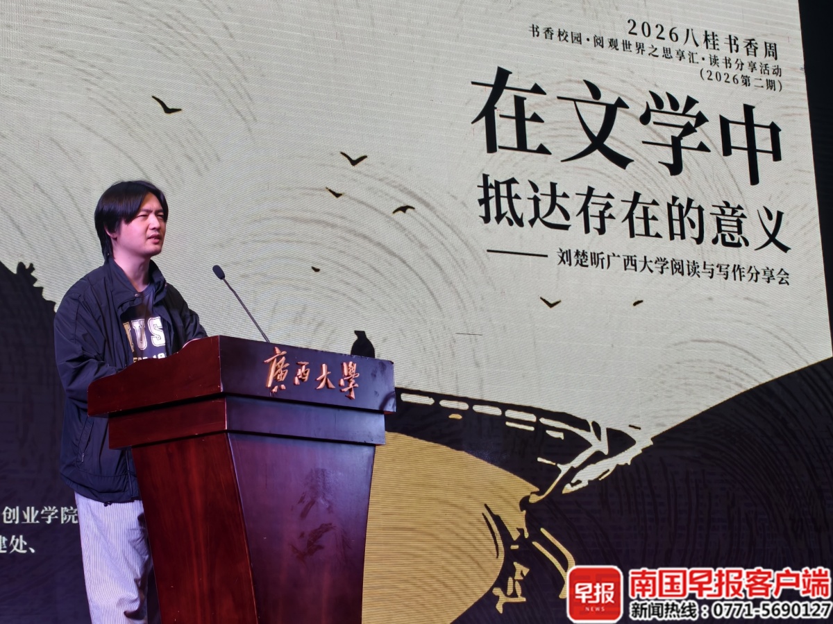 4月23日,“在文学中,抵达存在的意义”——刘楚昕阅读与写作分享会在广西大学大礼堂举行。第二届漓江文学奖得主、“90后”青年作家刘楚昕与在场学生围绕存在主义、文学创作与青年生活选择展开交流。