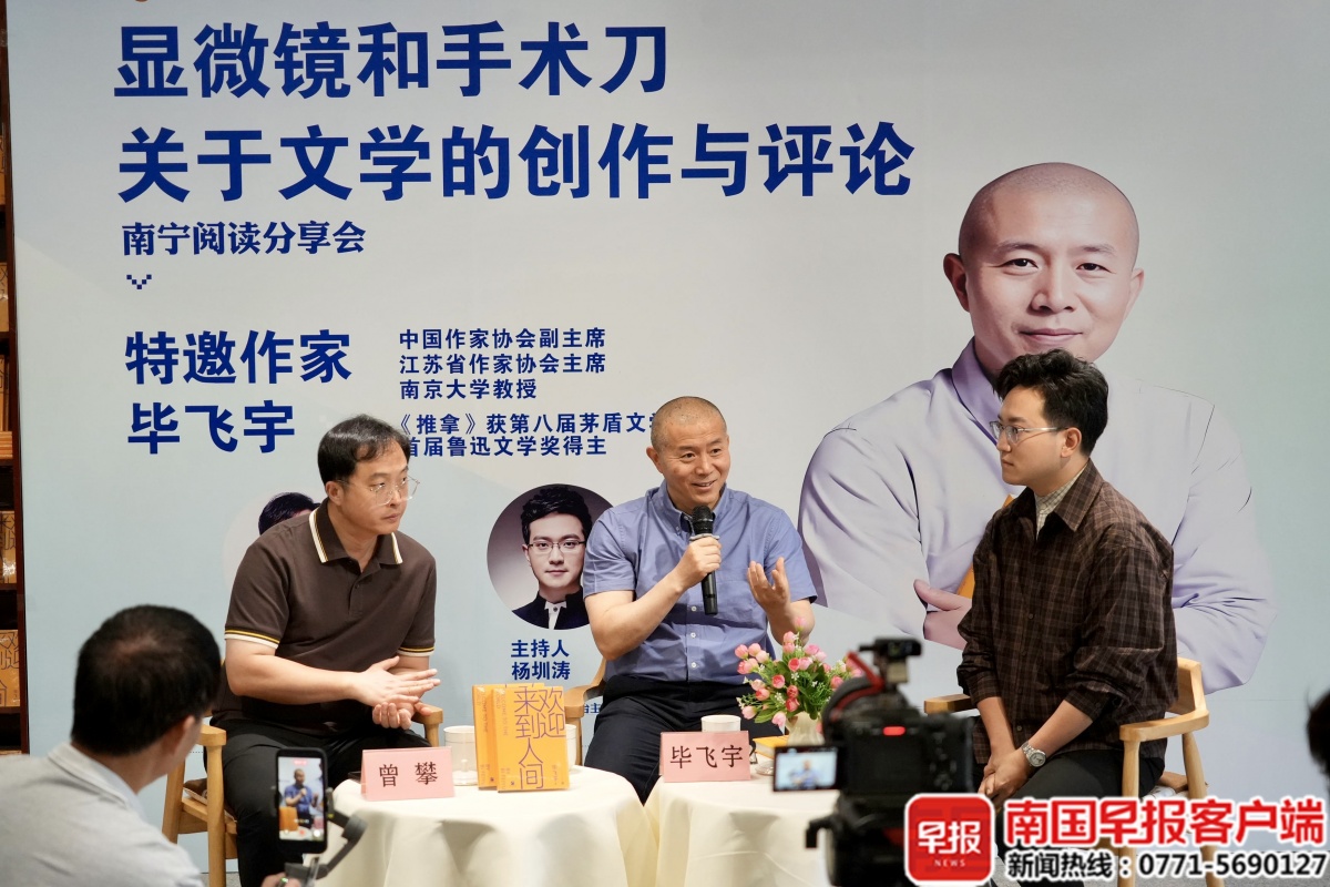 4月23日,正值第31个世界读书日,中国作家协会副主席、茅盾文学奖得主毕飞宇来到南宁,走进“八桂书香周”阅读分享会,与读者面对面畅谈创作、品读文学。