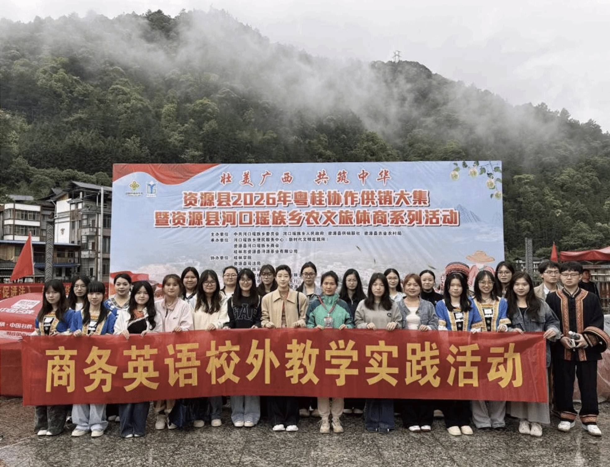近日,桂林学院外国语学院组织商务英语专业师生团队深度参与资源县2026年粤桂协作供销大集暨河口瑶族农文旅体商系列活动,以专业所长赋能地方农文旅产业发展。