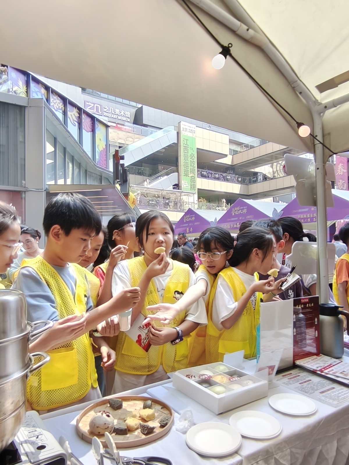 活动现场,小记者们的身影穿梭在各个展位,好奇心被彻底点燃。在老火水展位前,大家围得水泄不通,一边品尝用老火水制作的香甜馒头,一边追着工作人员提问:“这款水的名字为何叫老火水呢?”稚嫩的提问里满是求知欲,工作人员耐心解答,让孩子们在味蕾享受中了解特色饮品的奥秘。