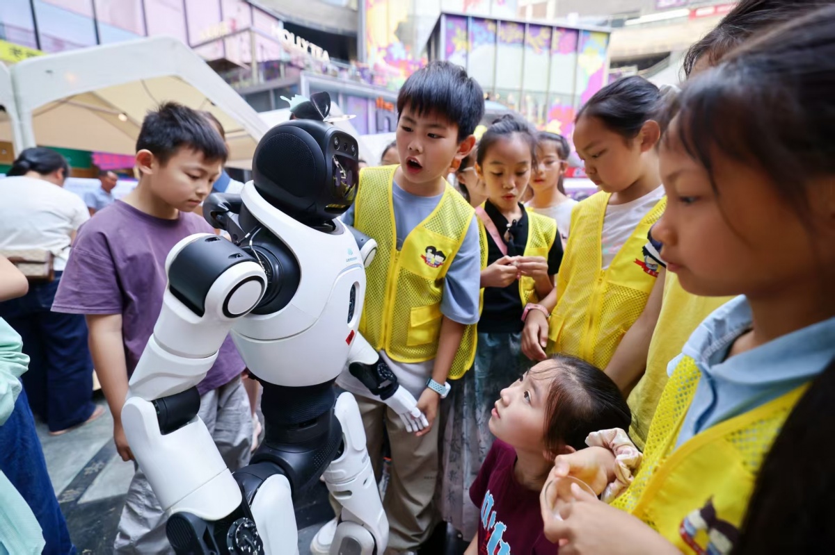 科技展区更是成为小记者们的欢乐天地。智能机器人身着融入广西民族元素的服饰,凭借语音交互、动作模拟等功能,与孩子们亲切互动。小记者们纷纷围上前,有的轻声对话,有的轻轻触摸机器人脑袋。李同学兴奋地说道:“智能机器人太厉害了,我也想拥有一个无敌机器人!”