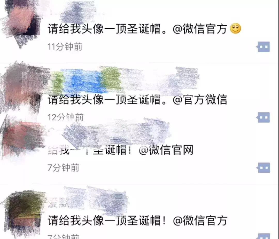 网友们纷纷@微信官方索要圣诞帽