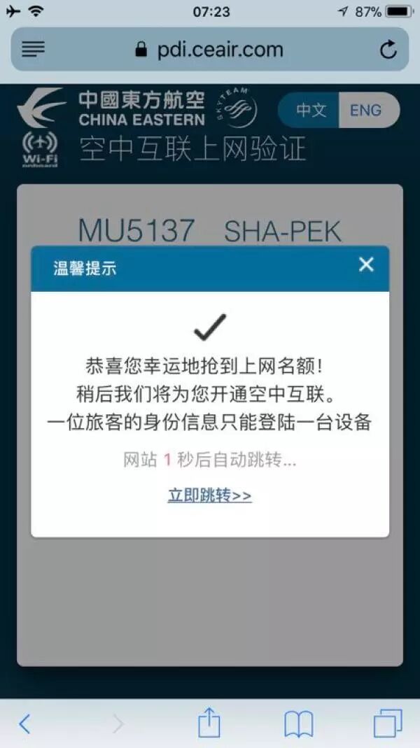 视频:记者体验东航空中Wi-Fi航班:要抢名额,网速有点慢。