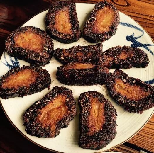 香煎黑米粽,也是很多人来这里爱点的一道菜。外层焦香脆口,咬开,里面软糯Q弹,还有黑糯米的清香。当然,店里还有很多广西家常菜,怀旧菠萝排骨、香煎禾花鱼、酥肉、老友花甲……