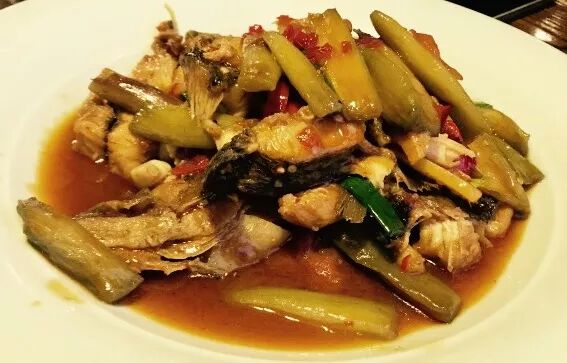 芋檬焖海鲈鱼,南哥一老家在北海的女助第一次来这家店吃到这道菜时,马上惊呼,说小时候在家吃妈妈拿手菜的感觉仿佛又回来了~真心话,南哥也好久没有吃过芋檬了,小时候,南阿姆也喜欢用酸芋檬作配菜炒肉。