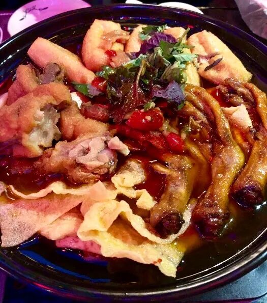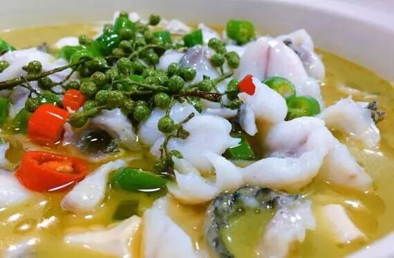 花椒鱼是店里的招牌菜,肉质嫩口鲜美,冒着滚油就着砂锅一起上桌,热气腾腾的,冬天里来一口鲜美的滚热鱼肉很过瘾,花椒麻味的刺激也马上能让身体热腾起来。