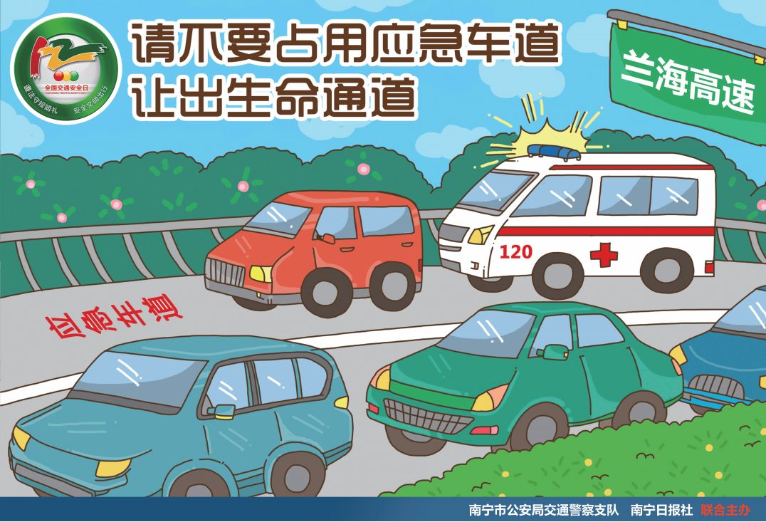 高速公路应急车道是专门供工程救险、消防救援、医疗救护和民警执行紧急公务使用的应急通道,被视为救援的“生命通道”。请别占用!