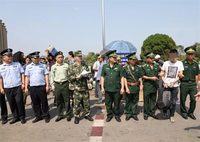 ▲一名嫌疑人在越南被抓获,然后在东兴交接。玉林警方供图