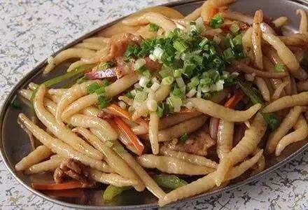 相传八仙粉是清宫传出来的,以有山珍、海味、时鲜八味以上,所以得名“八仙”。现在一般放的是鱼片、熟鹌鹑蛋、香菇、黄花菜、鱿鱼、鸡肉丝、瘦猪肉片、下水、鱼片等配料。