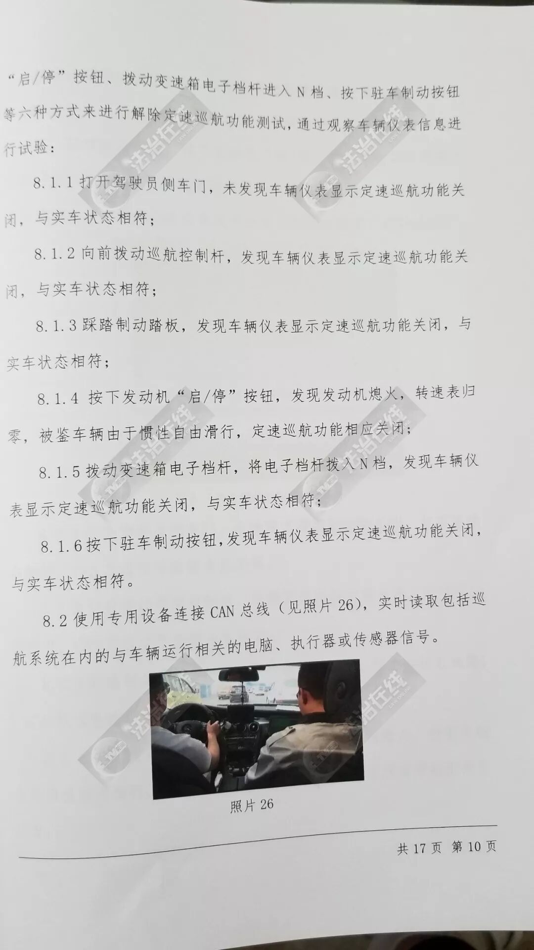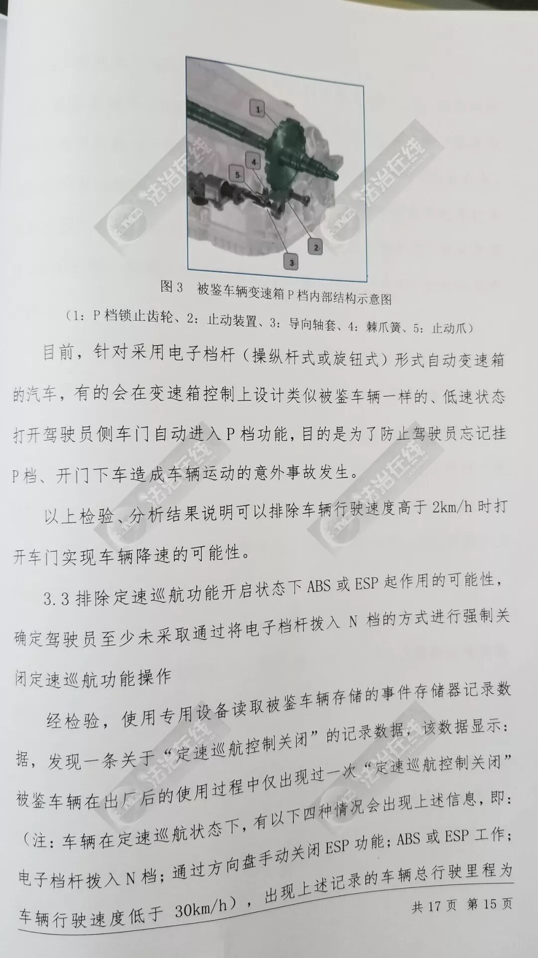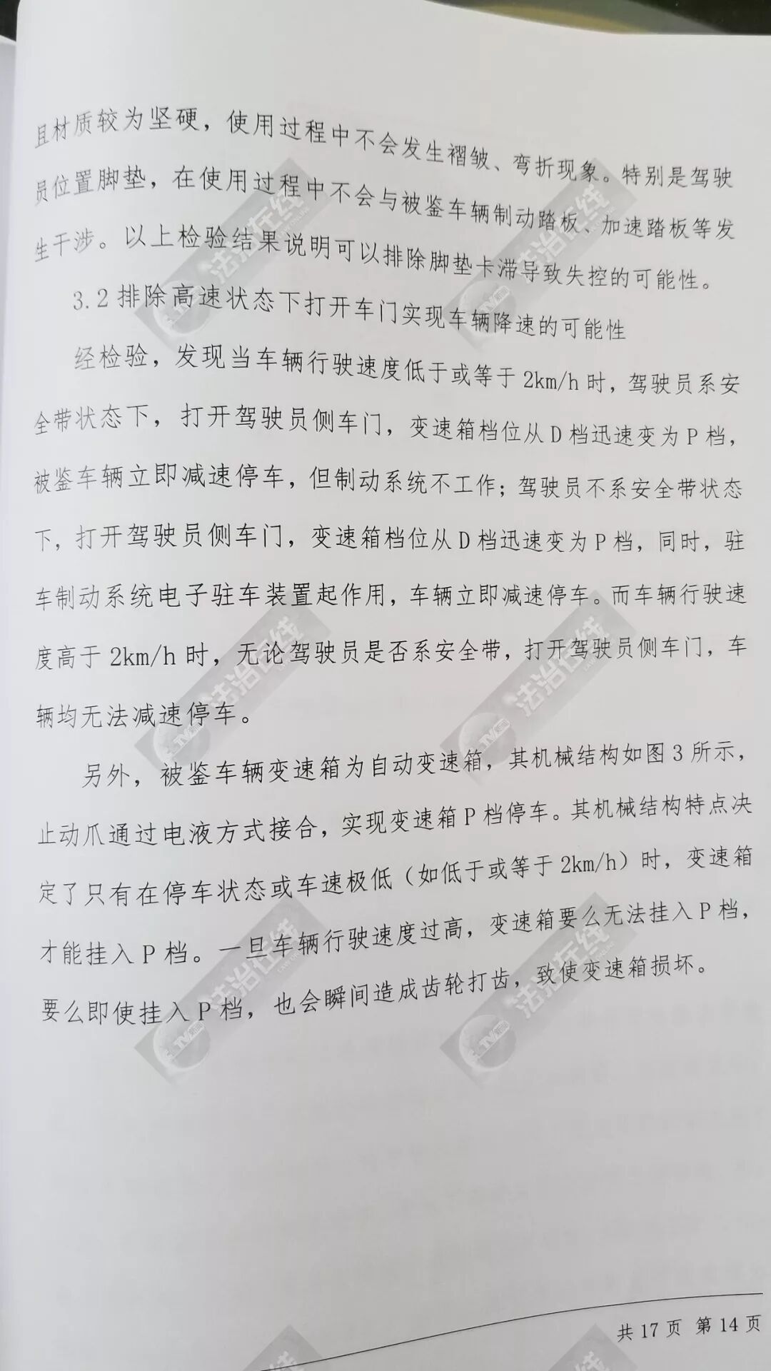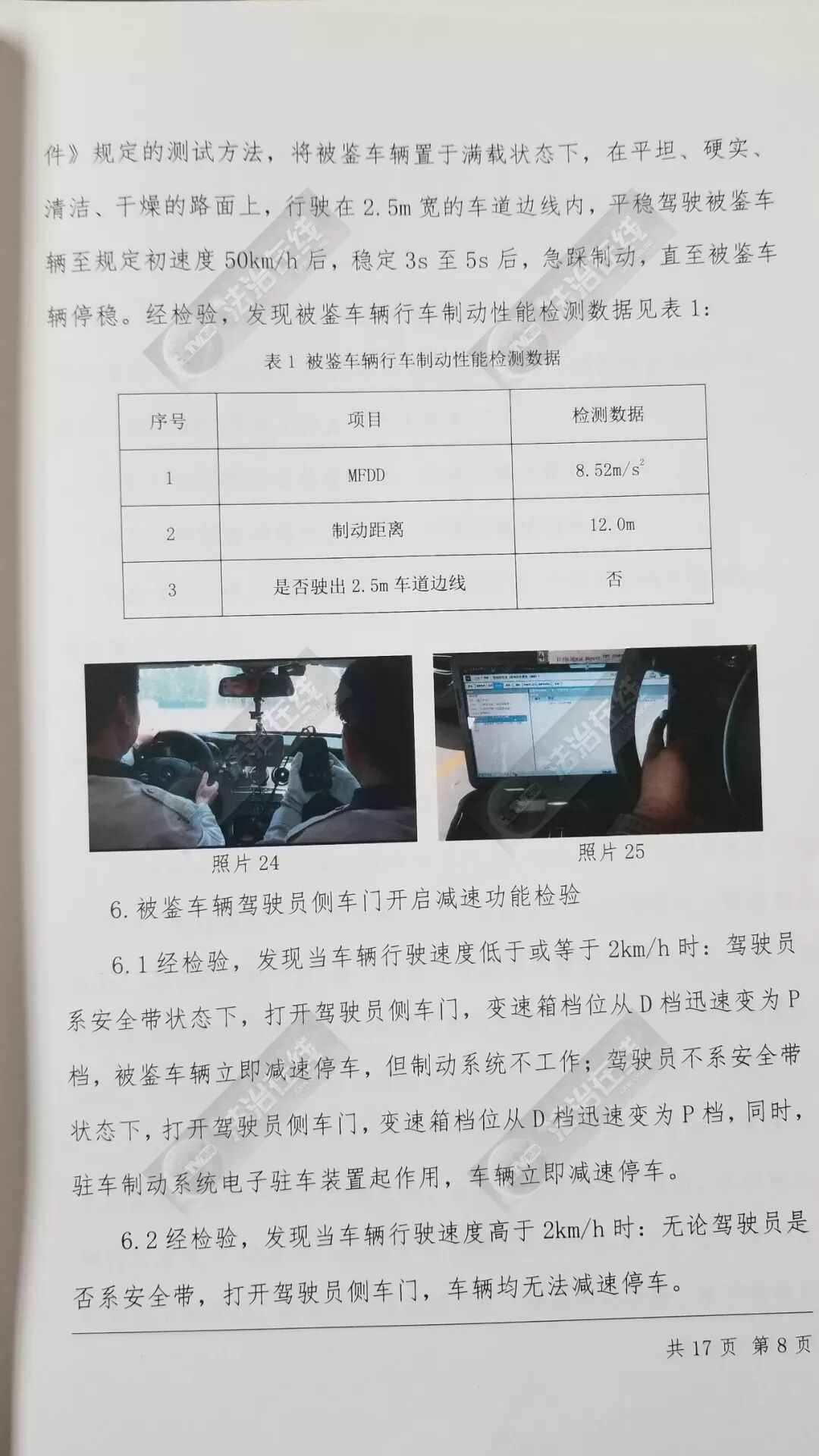 同时,意见书认定,车辆行驶速度高于2km/h时,无论驾驶员是否系安全带,打开驾驶员侧车门,车辆均无法减速停车。