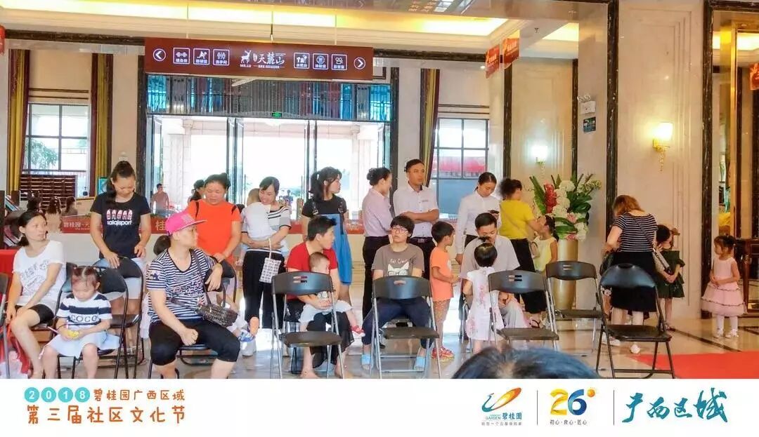 7月29日至7月31日,由碧桂园广西区域主办、中传锦绣(北京)教育科技公司协办、广西临风典雅文化投资有限公司承办的“睦邻友好,筑爱之家”2018碧桂园广西区域第三届社区文化节社区大明星少儿组选拔海选活动在南宁、玉林、柳州、百色、河池、桂林、贺州、北海八大城市陆续举行。