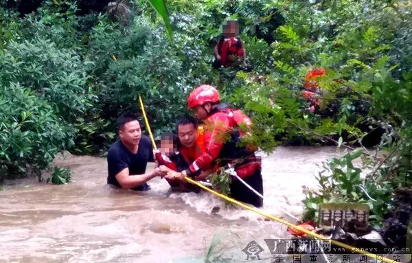 当时,老四在洪水中抓住岸边的树枝苦苦挣扎,民警赶紧将他救上岸。消防员赶到后,在岸上捆好安全绳,将朱某及老三营救到安全区域。