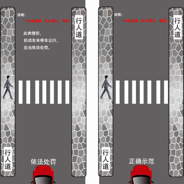 ⊙违法行为:遇行人正在通过人行横道时未停车让行