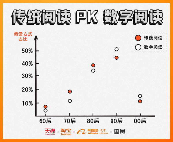 而在电子书方面,据天猫读书APP数据显示,自去年6月上线至今,电子书订单总量超2500万单。其中,选择电子阅读的读者群体中有46% 为90后,几乎占据半壁江山。90后群体更倾向接受数字时代的阅读方式。