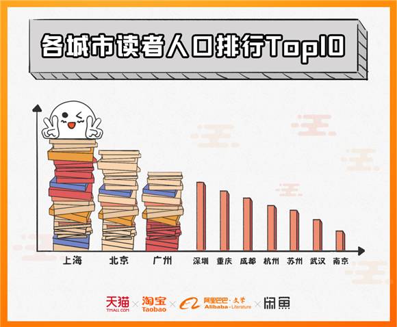 报告显示,在淘宝、天猫、闲鱼、阿里文学等平台上买书和读书的人,在2018年每人平均多读了一本书,人均购买纸质书达到 5.5本。上海读书人口总数在全国各城市中排名第一,职场读物、外语书籍、原版进口书长期热销。