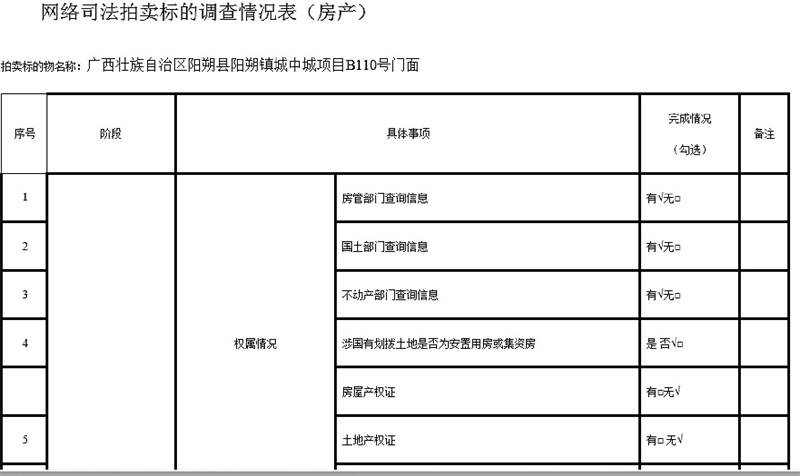 陈女士称,2018年12月25日,平乐县法院在网上发布拍卖公告,B110商铺调查情况表上,房屋产权证和土地产权证两栏,都填写了“无”。陈女士将有关上述两证原件的图片发给记者。她提出质疑,根据《拍卖法》相关规定,应公布所拍卖商铺的真实情况。该商铺明明办理了上述两证,为何却被公布成“无证”?