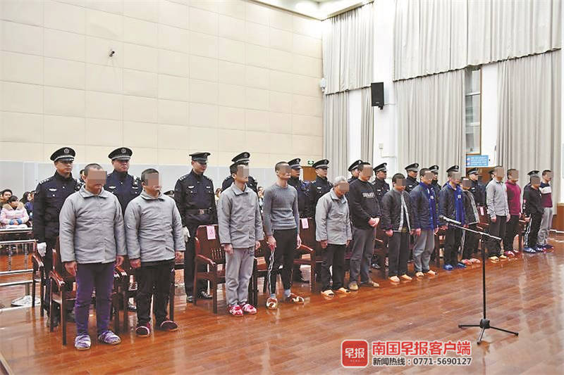 1月12日上午,由自治区高级法院、自治区检察院和自治区公安厅联合发文督办的被告人黄某贤等14人涉黑犯罪案件,在南宁市青秀区法院一审公开宣判,14人获刑,最高判刑20年。