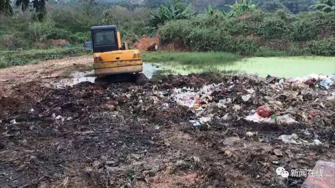 记者反馈问题得到重视,1月3日,南宁市高新区城管大队和南宁市高新区市政环卫管理站联合对美食广场垃圾池进行清运。钩机将泥塘里填埋的垃圾全部挖了出来,山坡上的垃圾也全部清理拉走。
