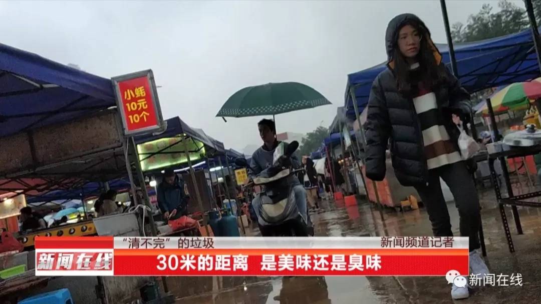 美食广场负责人:这边没有包卫生费、垃圾清运费,到时候我们会请有专门的垃圾车在这边收集再拉过去。那里美食广场有我们的垃圾填埋场,但是这种做法迟早都要改进的,现在环保抓得那么严。
