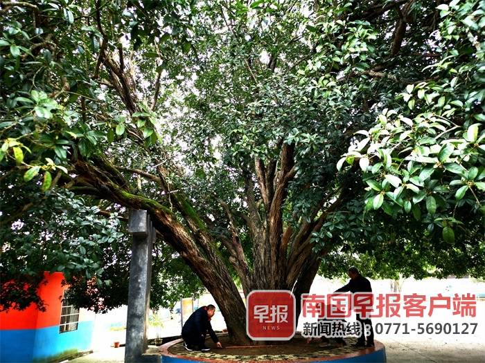 1月24日,南国早报客户端记者从桂林市园林局获悉,近日在平乐县一小学里,一株古桂花树刷新了桂林古桂花树围径的记录。经园林工作人员现场实测,该树围径4.08米(备注:围径是指距地面往上1.3米处的树干直径),超过了广西古树名木谱查中原有古桂花树围径的纪录,成为广西目前发现的围径最大的古桂花树。