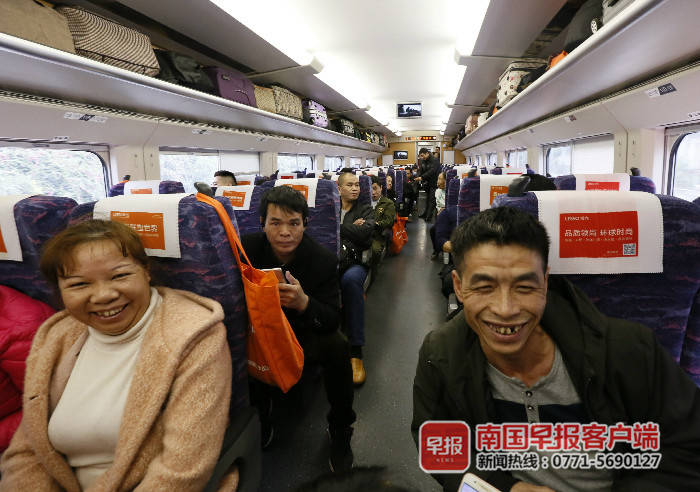广西人社部门广泛宣传动员符合条件的建档立卡贫困人员报名,经过调查摸底以及认真比对,最终确定了乘车人员名单。南国早报客户端记者从铁路部门了解到,2019年春节前,广西和广东两省区间一共开出8趟务工人员返乡专列,这其中有动车也有普速专列。这些专列从广州或深圳出发,沿途停靠桂林、柳州、南宁、百色和河池等地,运送返乡务工人员超过7000名。春节后,也会开行务工人员返程专列,方便务工人员返程务工。