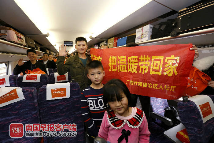 记者了解到,为了方便务工人员春节回家过年,近年来,广西和广东的铁路部门、人社部门和总工会紧密合作,组织开行务工人员返乡动车专列,为建档立卡的贫困人员提供免费乘动车返乡服务。截至2019年春运,务工人员返乡专列已连续开行5年,运送贫困务工人员超过2万人次。