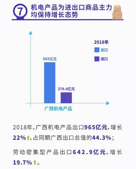 同时,东盟连续19年成为广西最大贸易伙伴;此外,对“一带一路”沿线国家和地区进出口增长显著。机电产品和劳动密集型产品为出口主力。其中,计算机与通信技术、机械设备表现尤为抢眼,出口值分别增长45.7%和55.7%。
