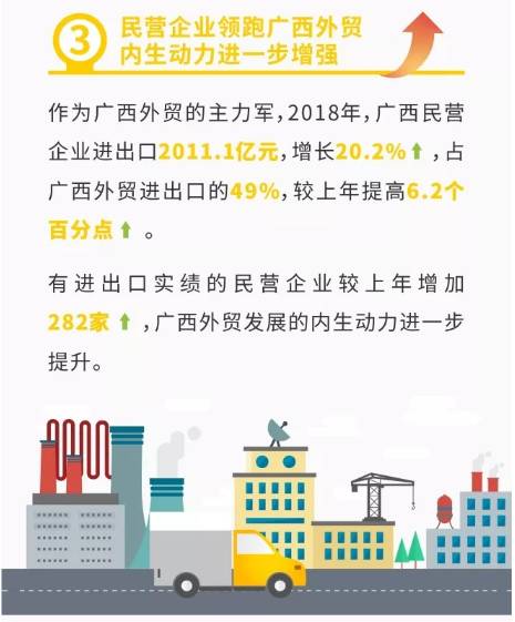 在贸易方式方面,边境贸易、加工贸易和保税物流进出口均实现增长;在经营主体方面,广西民营企业、外商投资进出口均大幅增长,国有企业进出口出现下降。