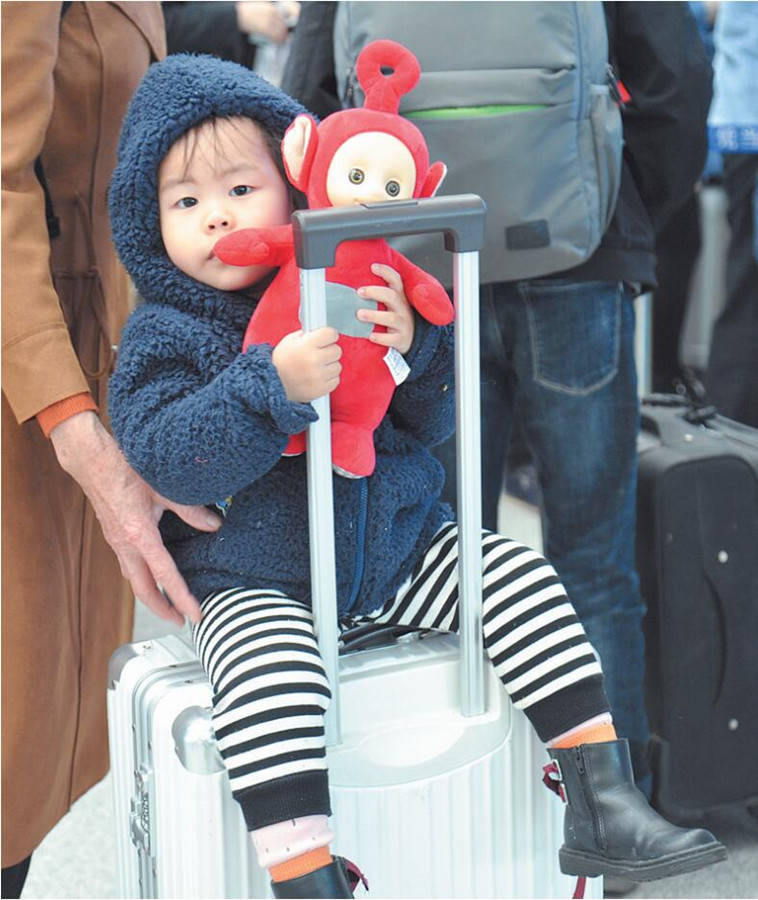 在春运的返乡潮中,孩子们也加入了“迁徙大军”的队伍中。他们就像羽翼还未丰满的小候鸟,他们或蹦蹦跳跳,边走边玩;或一手拿着心爱的小玩具,一手拖着小小的行李箱;或趴在爸爸的肩膀上,妈妈的怀里呼呼大睡……在春运熙熙攘攘的客流中,小候鸟们成了一道独特的风景。