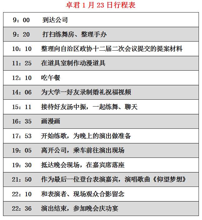 上午9点,卓君从家来到公司。向经纪人了解了近期行程安排后,朝自己办公室走去。