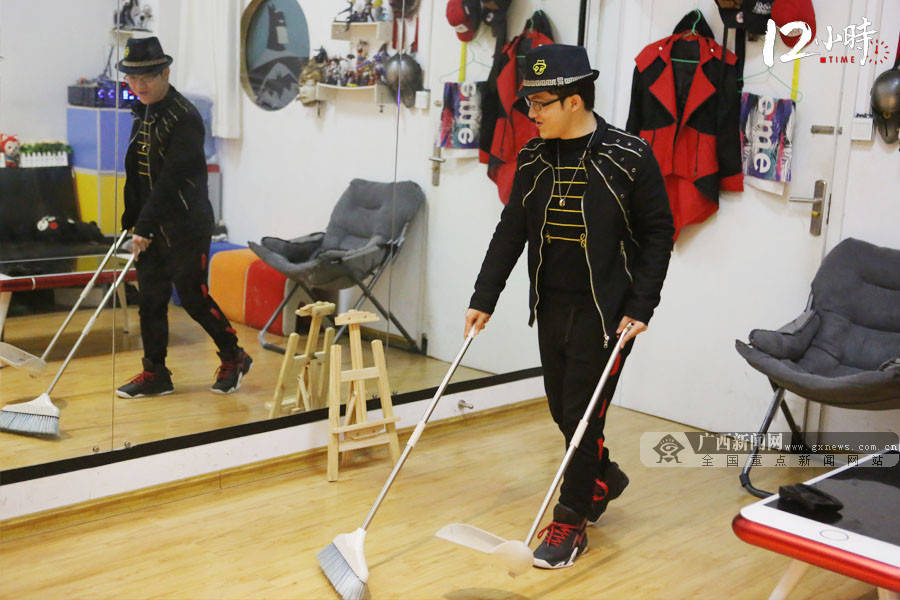 “打开音响,开始大扫除!”Uptown Funk音乐一响,卓君操起扫把开始清扫地板,伴着动感的音乐,即便是拿着扫把,他也不忘来段“扫把舞”。
