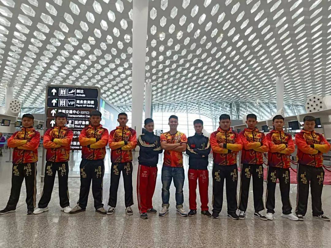 ▲早前,邓彬光(中)与狮队成员抵达北京机场。