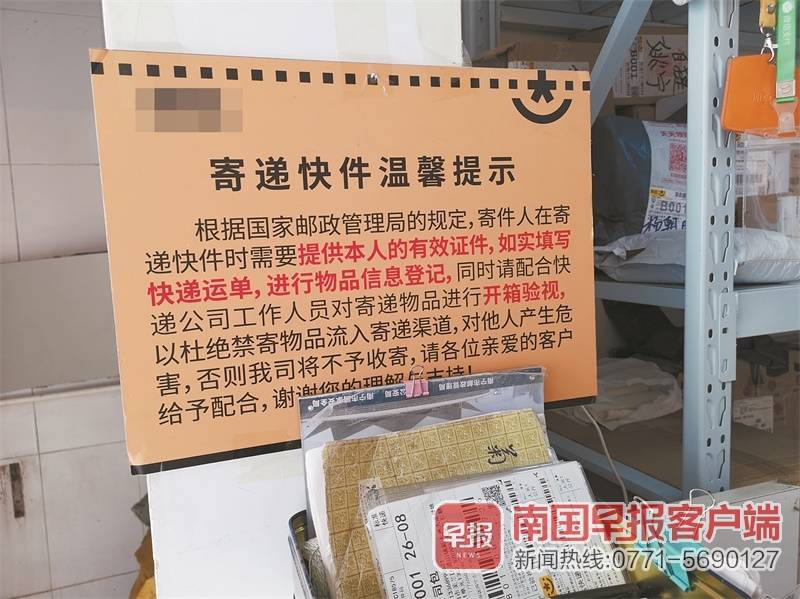针对委员提到的这些现象,南国早报客户端记者对南宁市火炬路、建政路、望州路等片区的快递营业网点进行了走访,所见的营业网点均未见设置相关安全检查设备。有的收寄点还是小卖部、水果店等兼营的,由营业员或店老板代为收揽包裹。