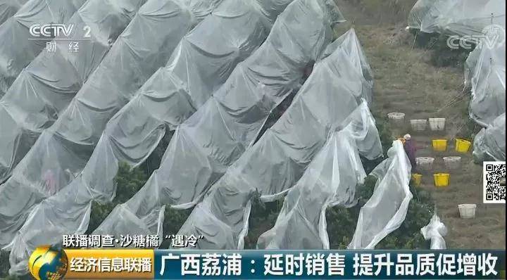 广西荔浦距离象州有120多公里的距离,但沙糖橘的上市时间却间隔一个月左右,记者来到这里看到,成片的果树被白膜覆盖,层层叠叠,颇为壮观。