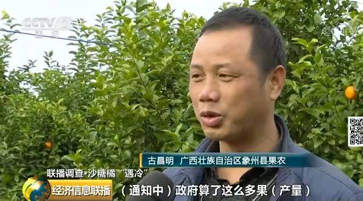 广西壮族自治区象州县果农古昌明说,通知中政府算了这么多沙糖橘产量,象州县有这么多亩产,我们心里触动很大,就想了办法赶紧卖果,不要等价格了。