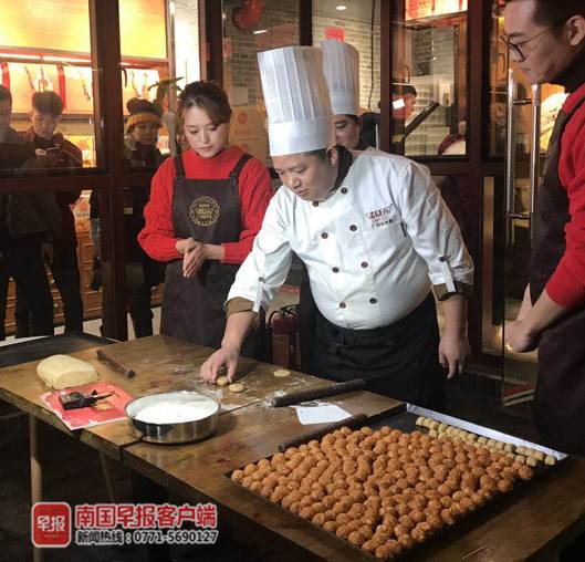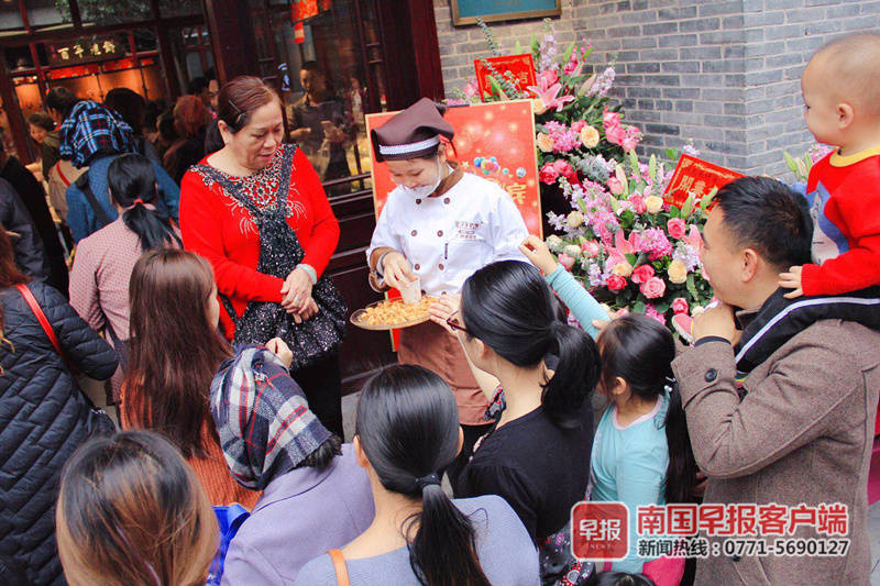 50年前曾在南宁市仁爱街居住的李先生今天带着从广州回来的儿子逛水街,儿子边逛边品尝着南宁年货,感受着家乡的味道。李先生说:“我们以前过年特别热闹,家家户户在门前架一个炉子,煮大粽、蒸粉,还互相帮看火。现在的年轻人都不会包粽、炒制年货了,但还好能在水街买得到南宁的老味道!”