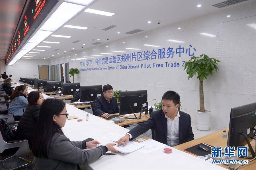 ▲在中国(河南)自由贸易试验区郑州片区综合服务中心,工作人员在为企业办理相关业务(2018年11月20日摄)。新华社记者 冯大鹏 摄