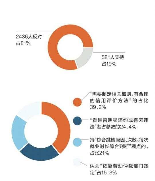 更多人则对此表示反对,因为在企业面前,员工绝大多时候处于弱势方,企业想裁员就裁员,员工一点主动权都没有。难道离职就是信用不好吗?还有观点认为,企业在录用员工时,已考虑过候选人的职业经历,而劳动者在跳槽时大多也会充分顾及频繁离职的风险,犯不着上升到信用评价层面。