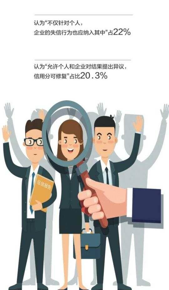 一些网友表示,如果企业方以隐瞒重要信息试图让员工加快入职,或者在面试时承诺的基本不实现,那么也该把相关企业列入信用黑名单。同时,认为这套体系应当“允许个人和企业对结果提出异议,信用分可修复”的,也占比20 .3%。