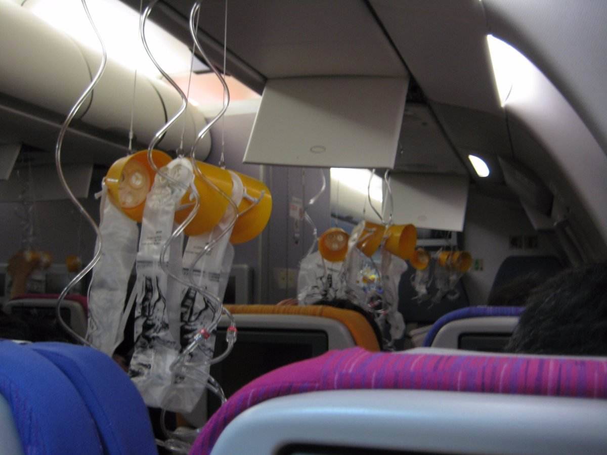 据报道,事件发生在起飞两小时后。一名乘客表示,首先是信息板被关掉,然后灯熄了,氧气面罩掉了下来,再然后响起了“请大家带上面罩”的广播。