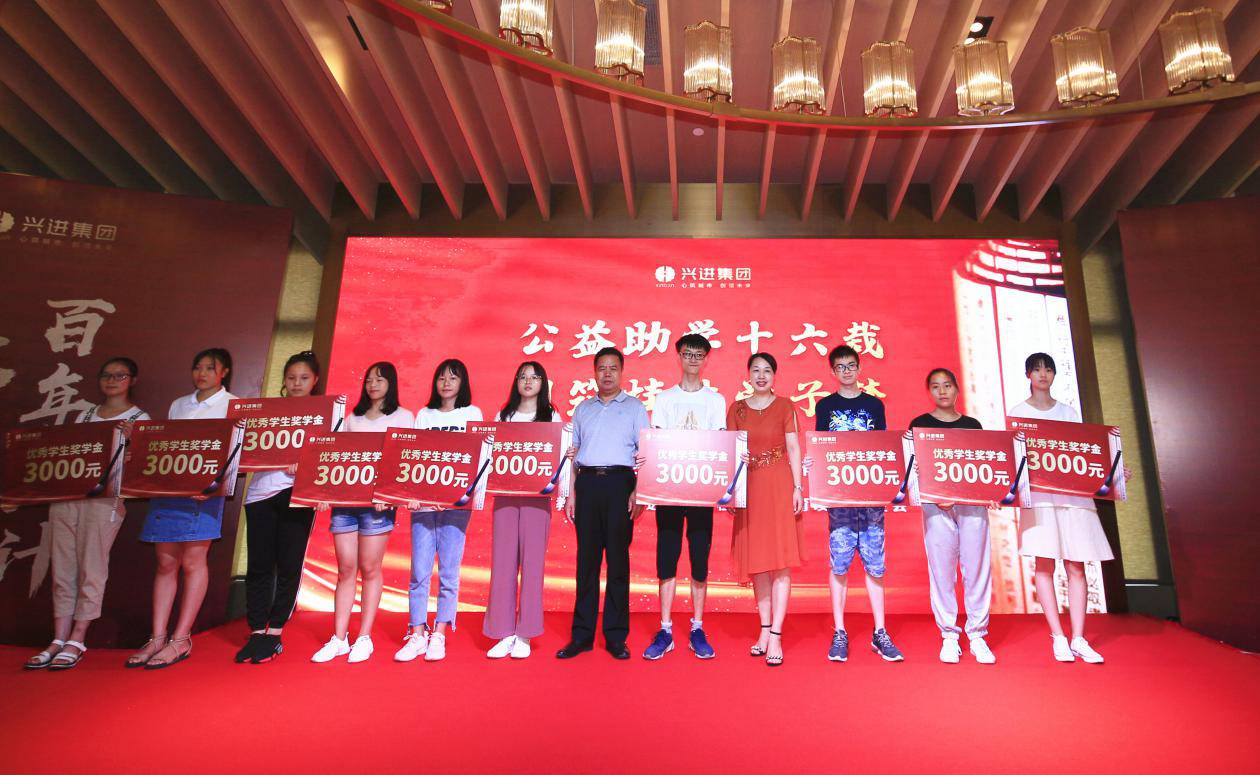 仪式上,与会领导与嘉宾为40名优秀学生代表、建档立卡优秀贫困生代表颁发奖励助学金,获奖学子对兴进集团的慈善义举表示衷心的感谢。