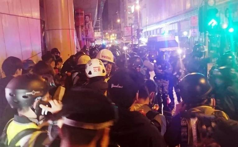 当晚21时后,朗豪坊对面钵兰街发生“私了”事件,一名男子被人包围攻击。其后,防暴警察及速龙小队赶到,有人被当场制服。