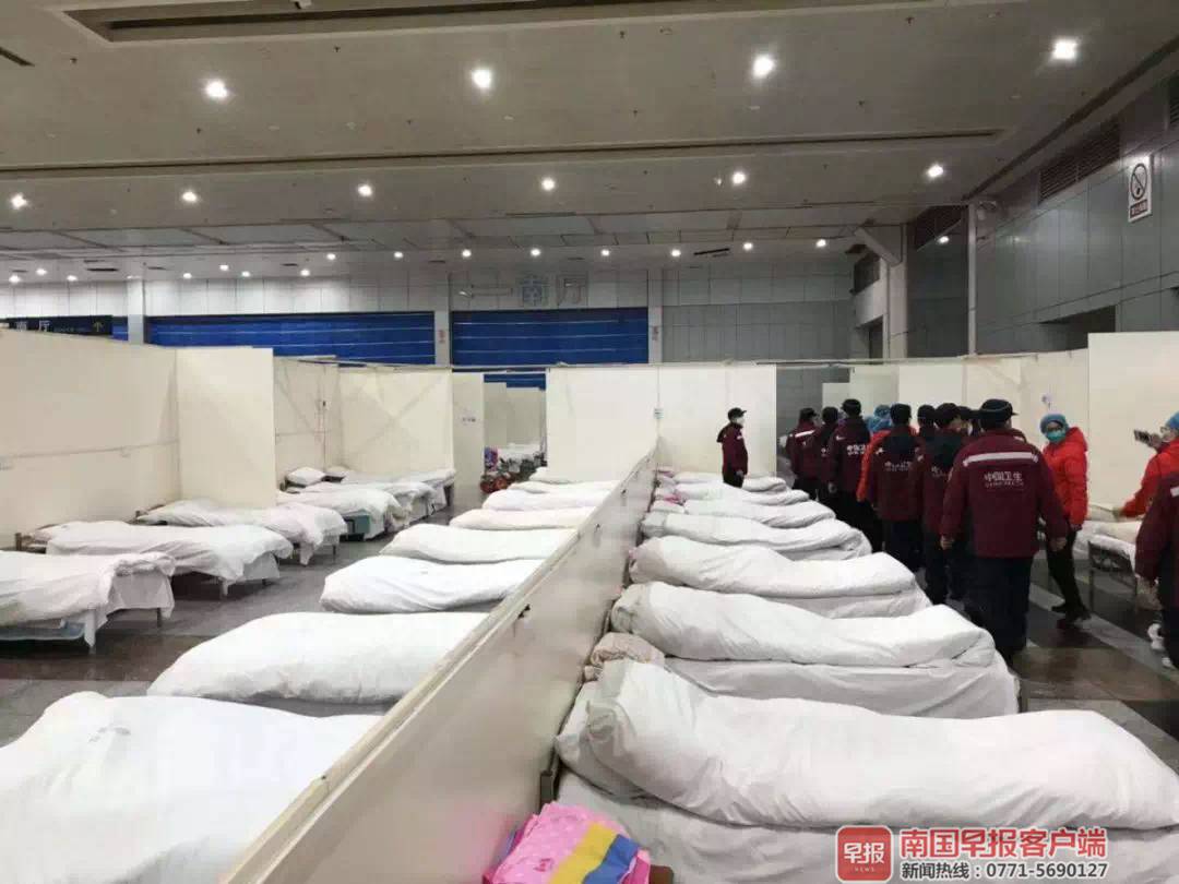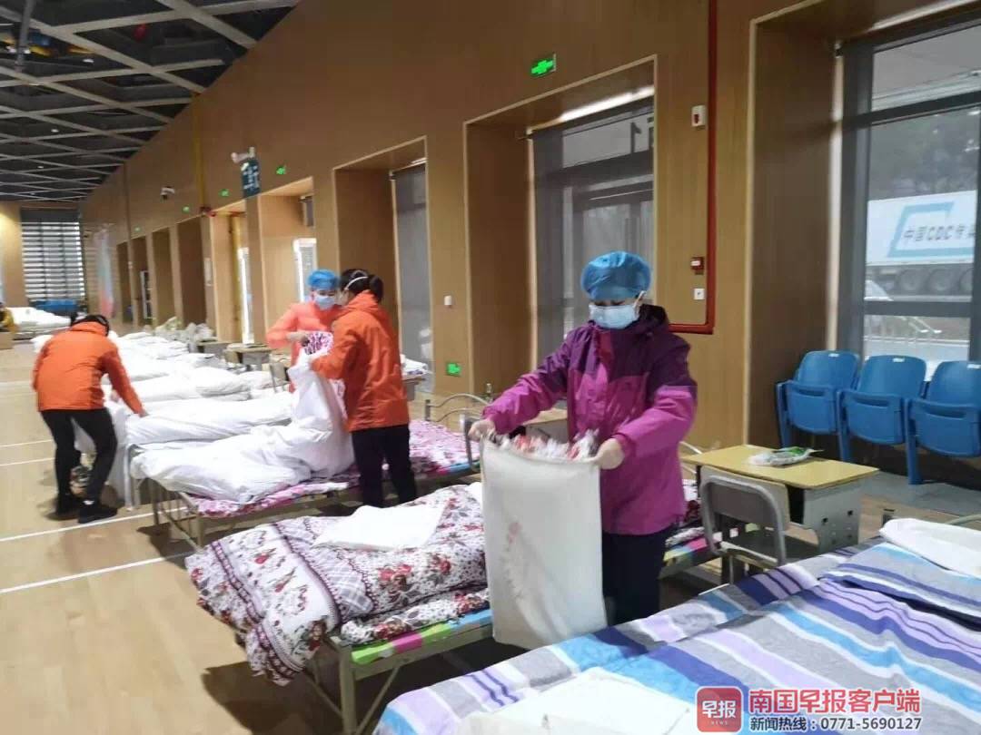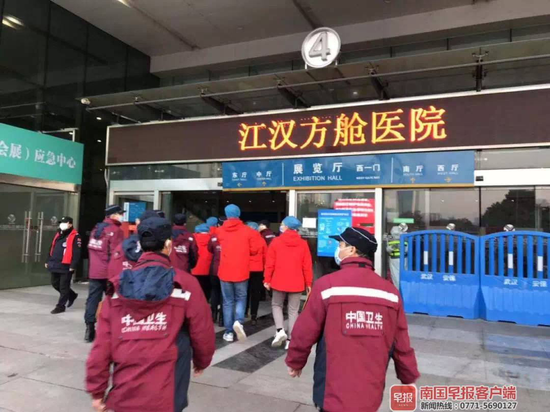 武汉方舱医院正是广西第二批医疗队的主战场。第一组国家紧急医学救援队(广西北海)36人援助江汉方舱医院,第二组护理医疗队100人援助洪山体育馆方舱医院。